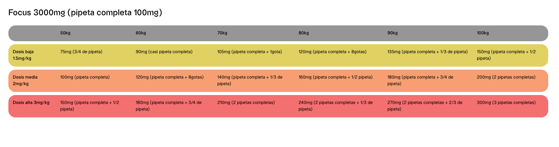Dosis recomendada: ¿Cuántas gotas debo tomar? Se recomienda tomar Focus.Drops Oil 1-2 veces al día, especialmente en días previos a periodos de concentración prolongados o cuando necesitas un enfoque mental extra. Consulta nuestra tabla para saber cuántas gotas debes tomar.